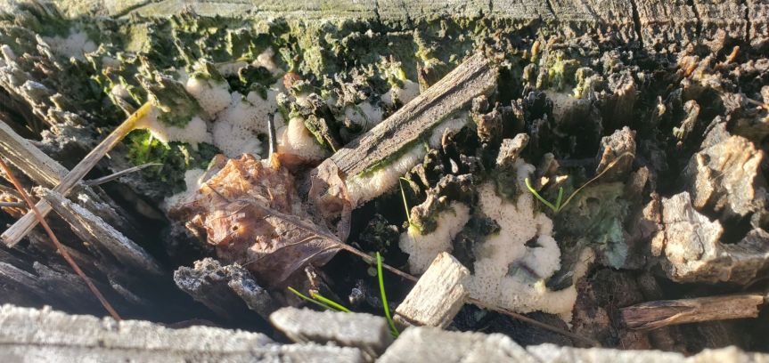 The old Tulip Tree stump has some cool fungus and, perhaps slime mold. Wicked cool!